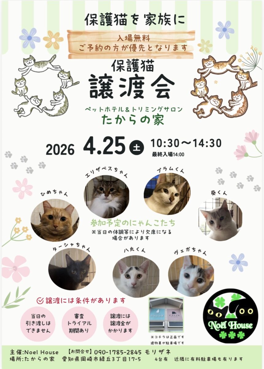 🍀4/25(土)譲渡会のお知らせ🍀